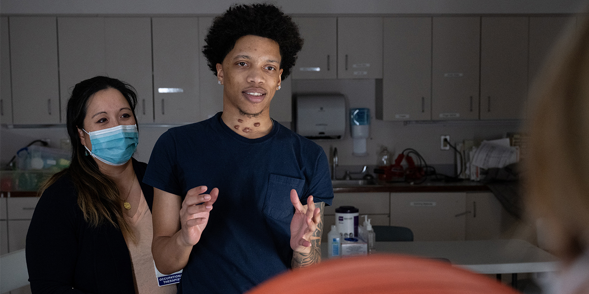 During an inpatient stay, each patient is under the care of a physician who is board certified in brain injury medicine. Three levels of brain injury care allow each patient to receive the appropriate treatment in all stages of recovery. Depending on their unique needs, patients have access to a full range of multidisciplinary specialists, including experts in behavior management, medical management, spasticity management, mobility, assisted technology, communication and cognitive disorders, neuropsychological management, social work and therapy. Actor and comedian Tracy Morgan continues to give back after receiving brain injury care at Hackensack Meridian JFK Johnson Rehabilitation Institute through the “Tracy Morgan Award for Excellence in Rehabilitation Nursing.”